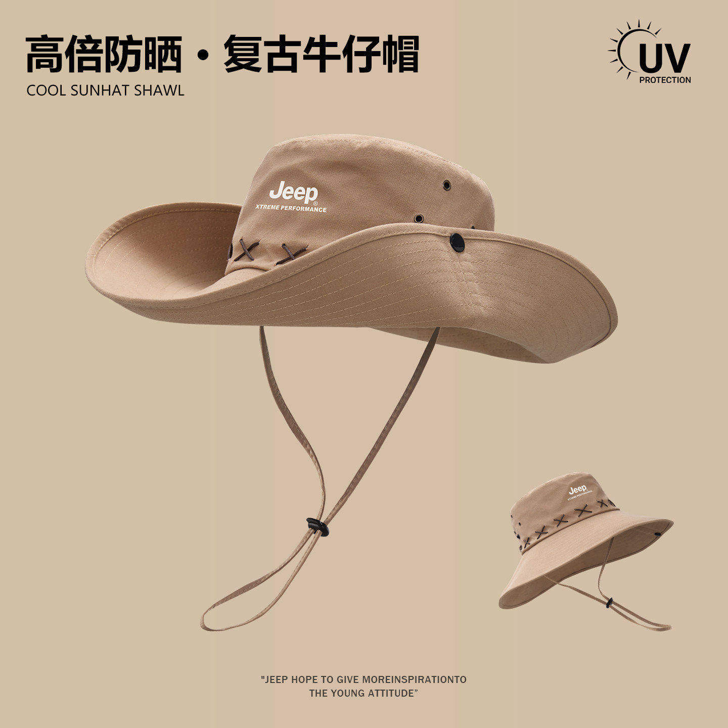 jeep吉普遮阳帽女夏季渔夫帽防晒帽子防紫外线太阳女士西部牛仔帽