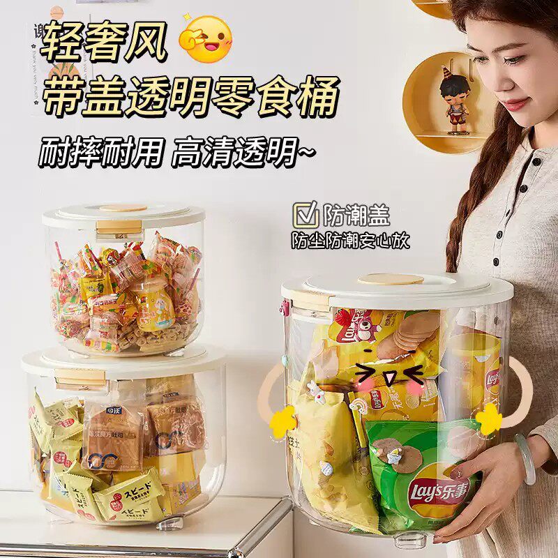 过年零食收纳桶透明大容量儿童收纳盒密封罐米面桶防虫密封储米箱