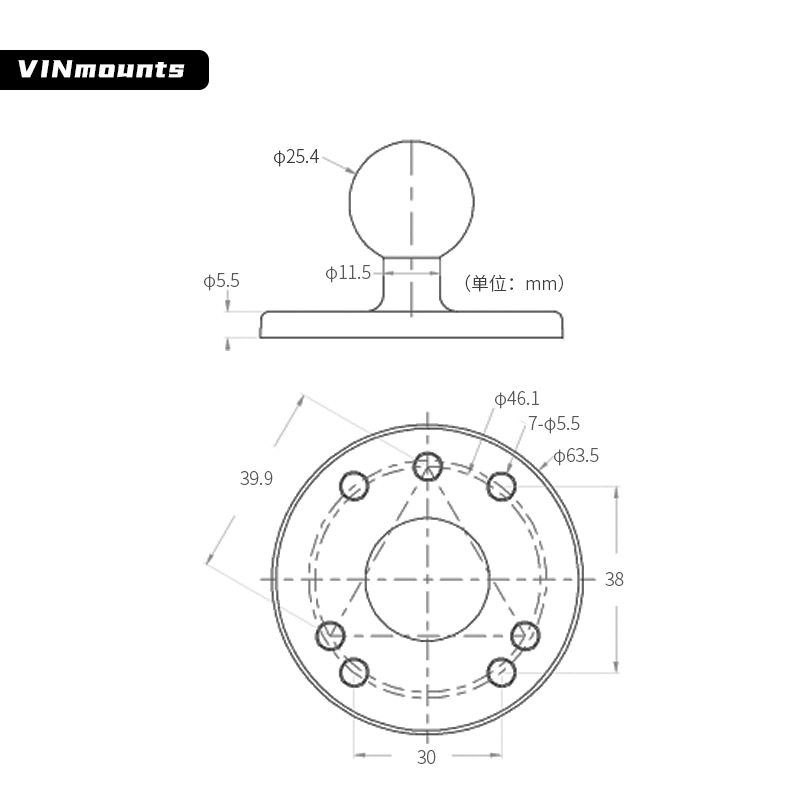 货车北斗导航支架中控台支架1英寸球头AMPS孔位标准30*38球头底座