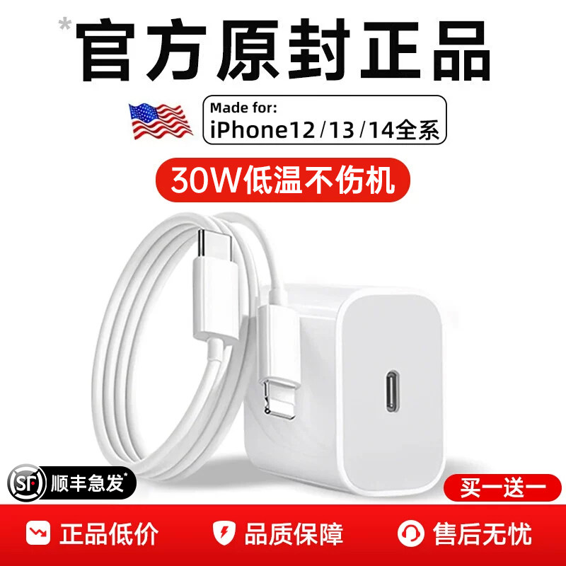 【官方正品】30W快充FIVI适用苹果14/13充电器头iPhone17手机15promax插头16原装PD20W认证数据线12iPad一套x