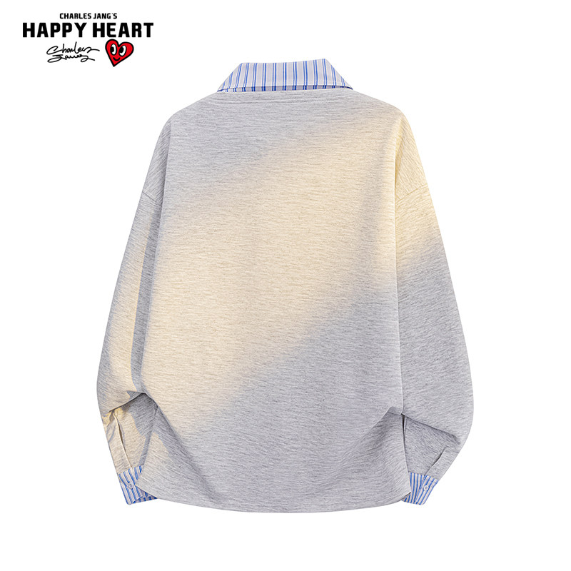 查尔斯桃心 春秋季情侣款涂鸦领带假两件衬衫领卫衣