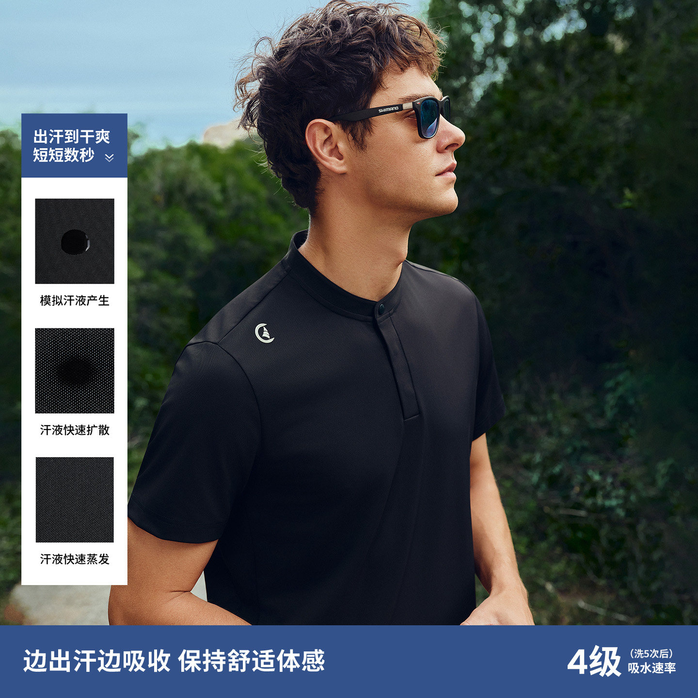 Navigare意大利小帆船速干立领短袖T恤男2026夏季户外黑色套头衫