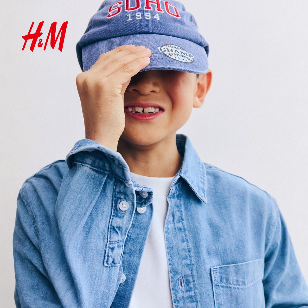HM童装儿童男童衬衫2025秋新款洋气休闲翻领长袖牛仔衬衣1237855