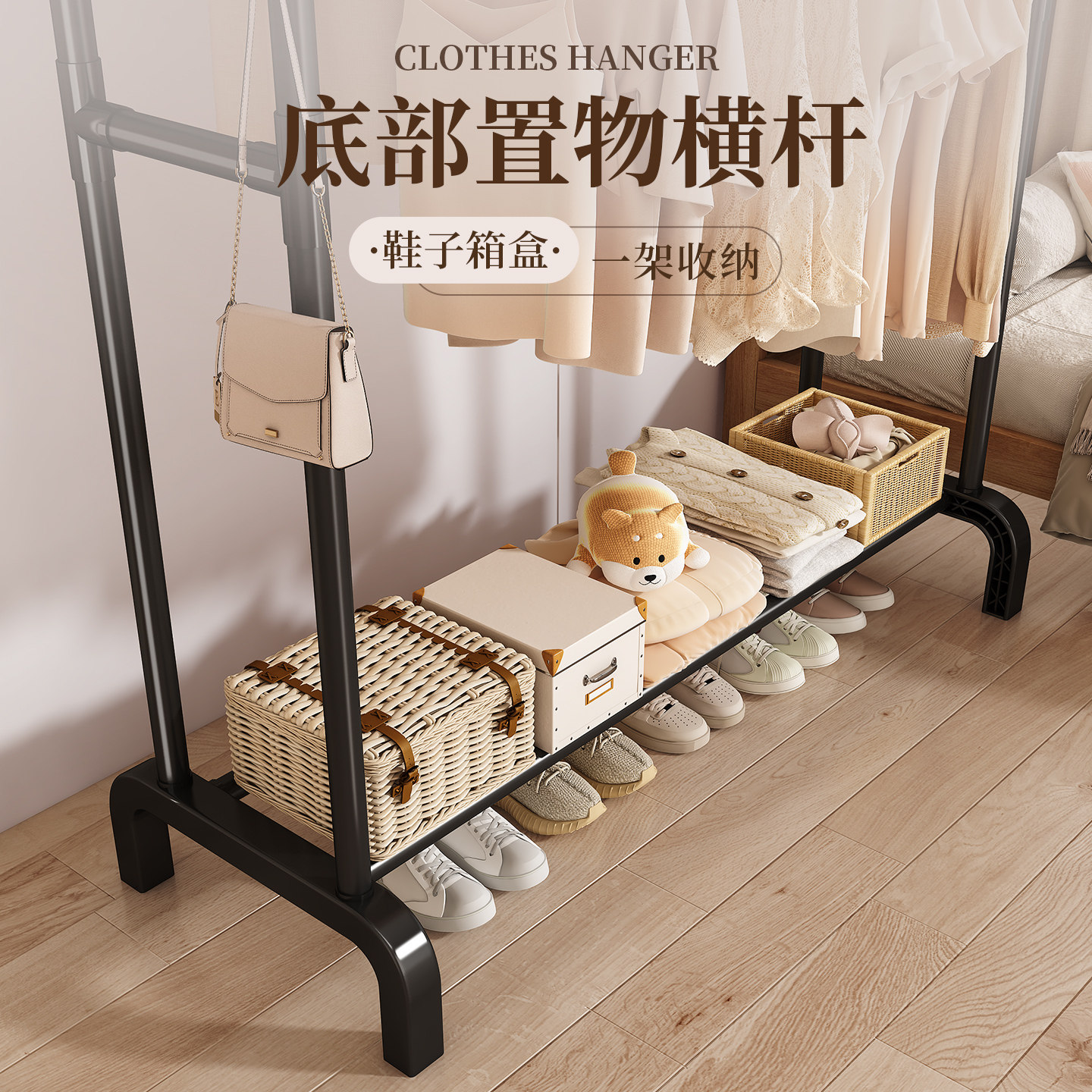 晾衣架落地家用可移动卧室凉衣架阳台挂衣服架子室内简易杆衣帽架
