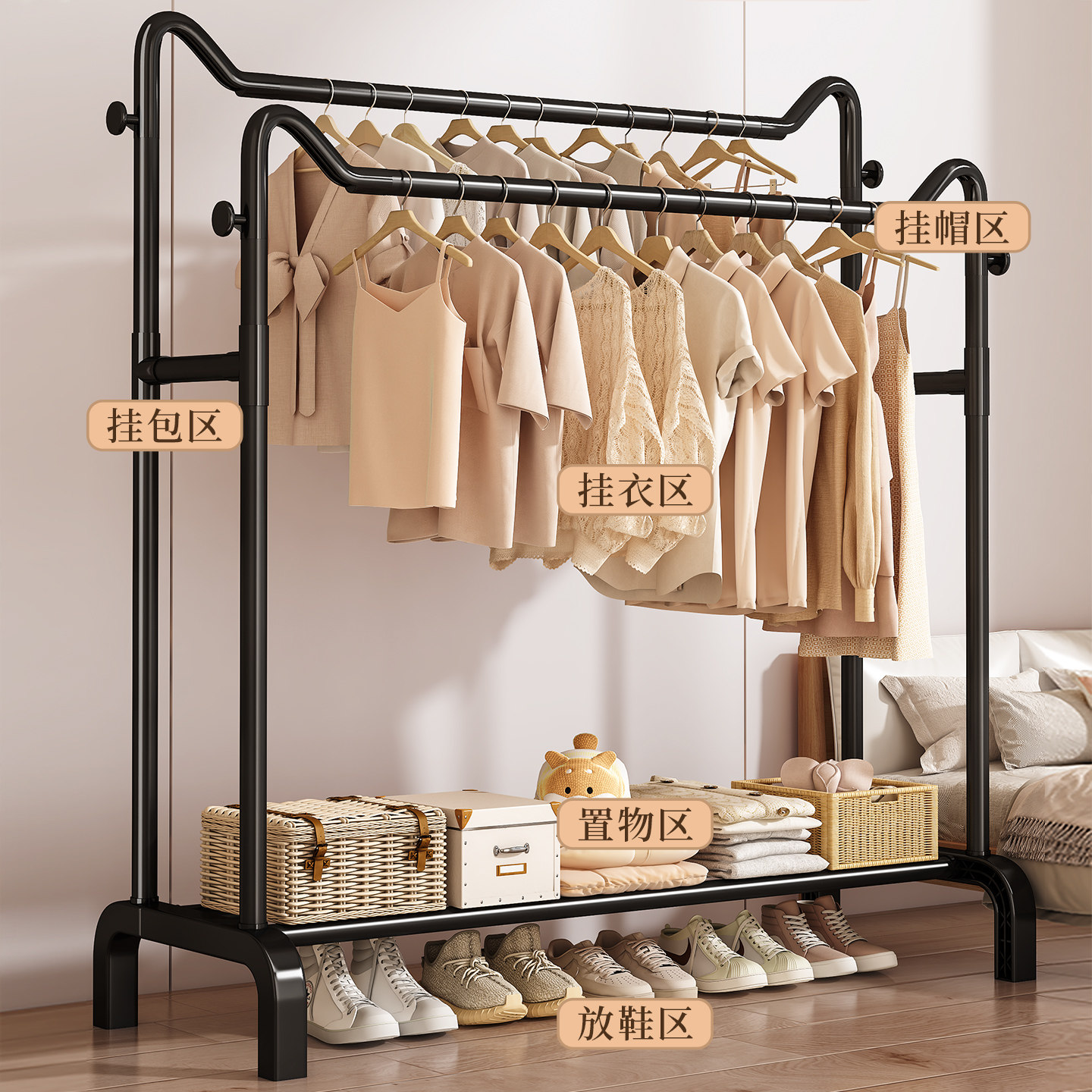 晾衣架落地家用卧室挂衣架宿舍室内双杆双层晒衣服架子简易凉衣杆