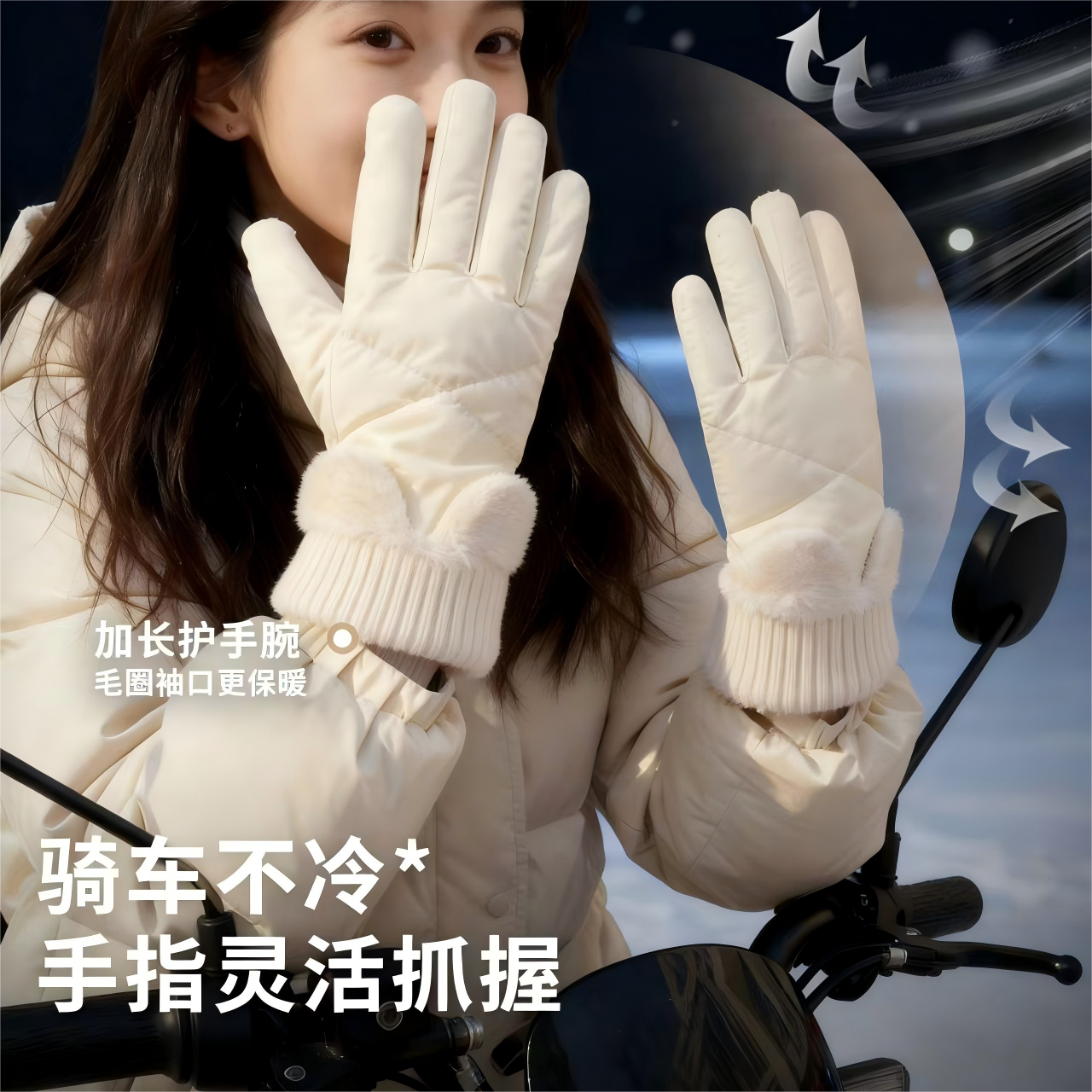 手套女士冬加绒加厚骑车保暖骑行冬季防水防寒可触屏防风冬天加长
