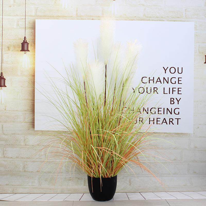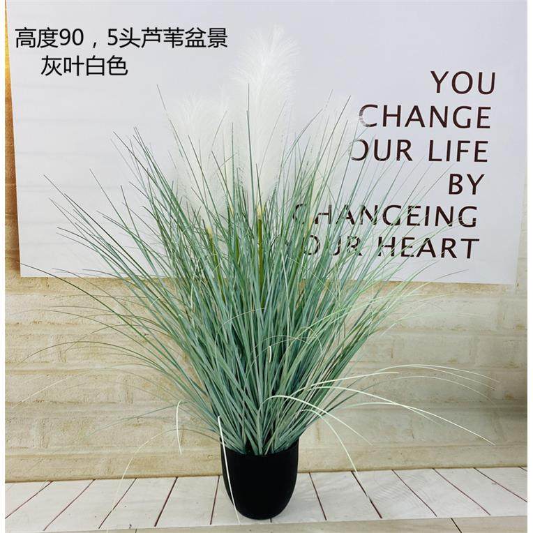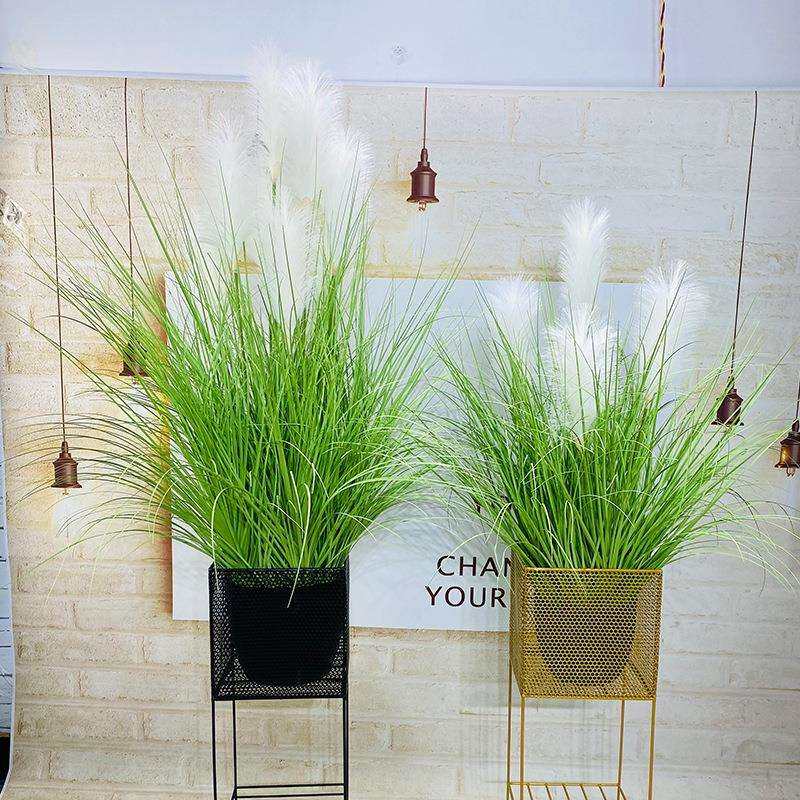北欧客厅仿真芦苇草狗巴秋色仿真绿植物盆景盆栽装饰网红摆件盆景