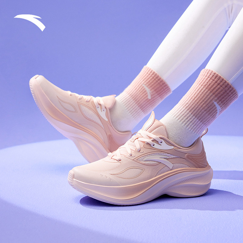 安踏叶子轻质厚底跑步鞋女春季新款轻便回弹运动鞋增高女鞋子