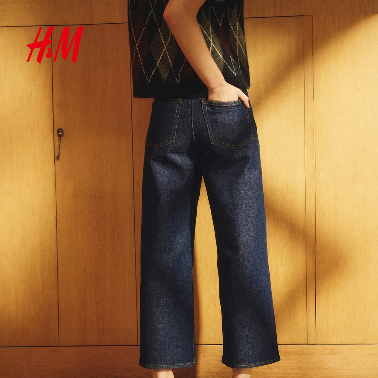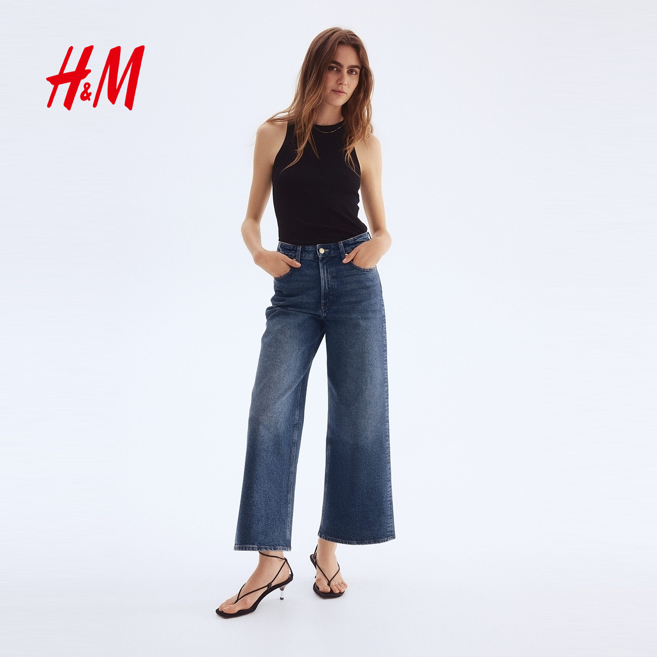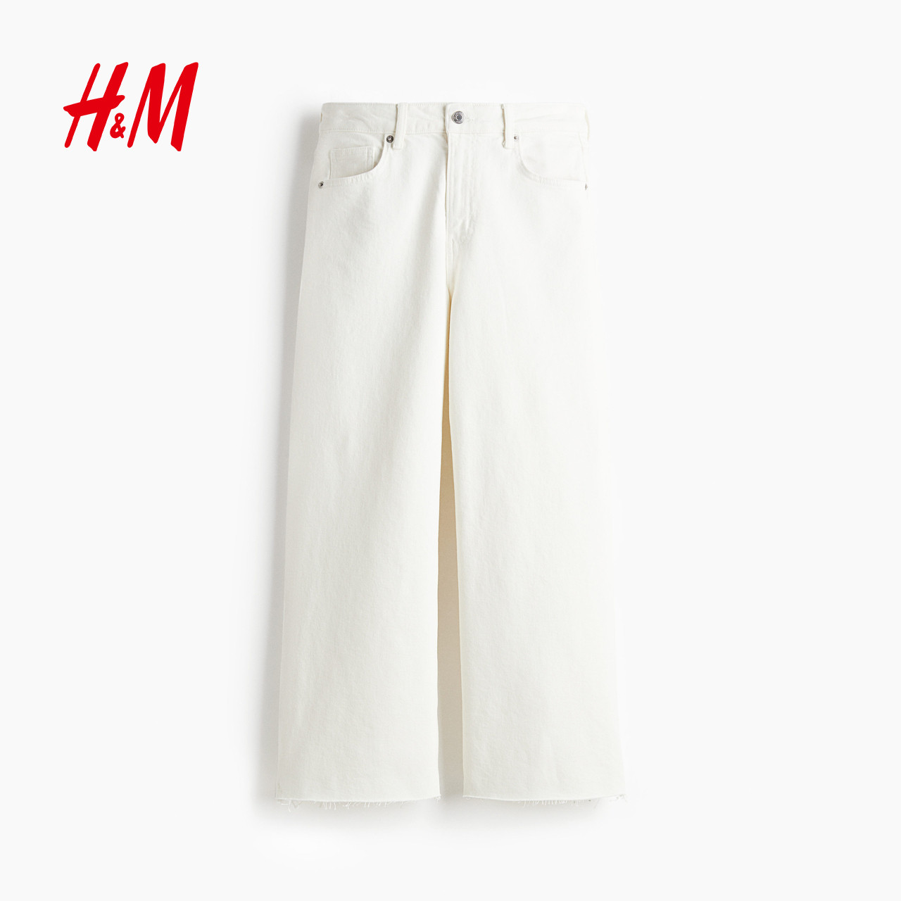 HM女装牛仔裤春季阔腿版型水洗时尚微弹通勤慵懒高腰裤1236909