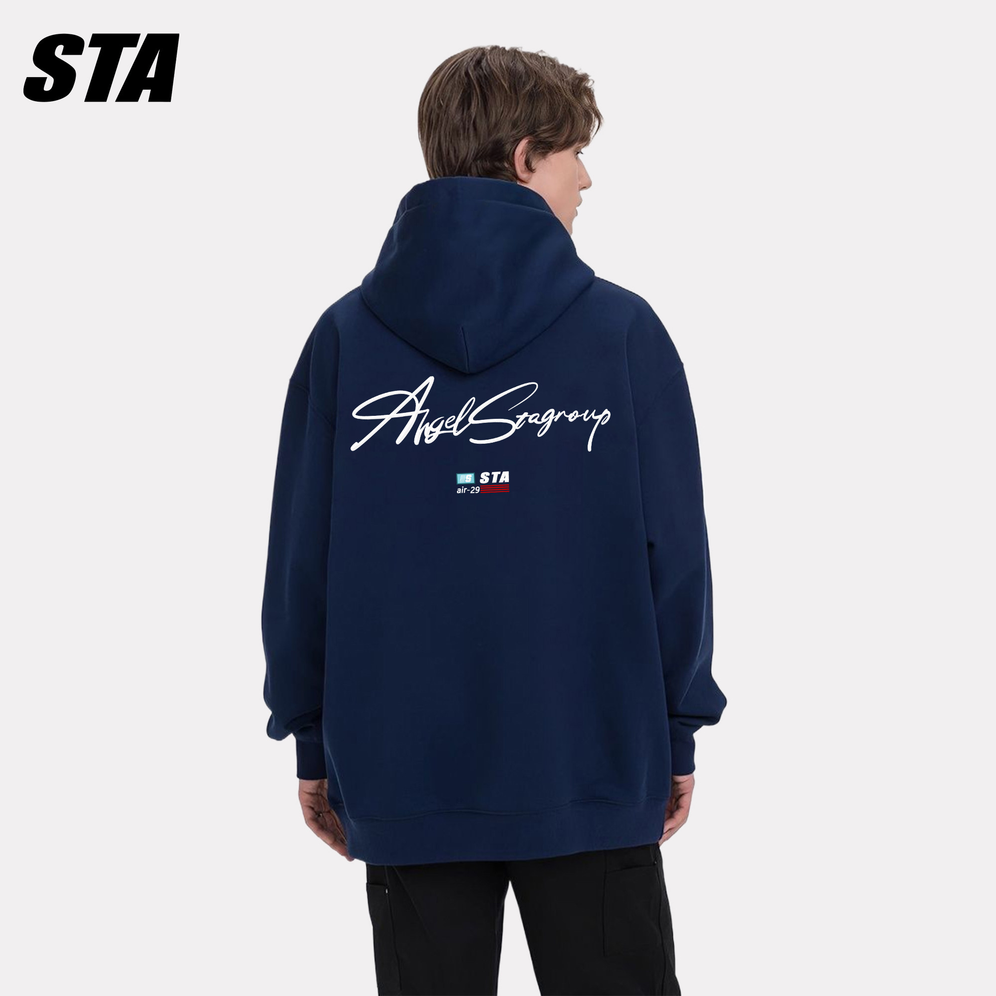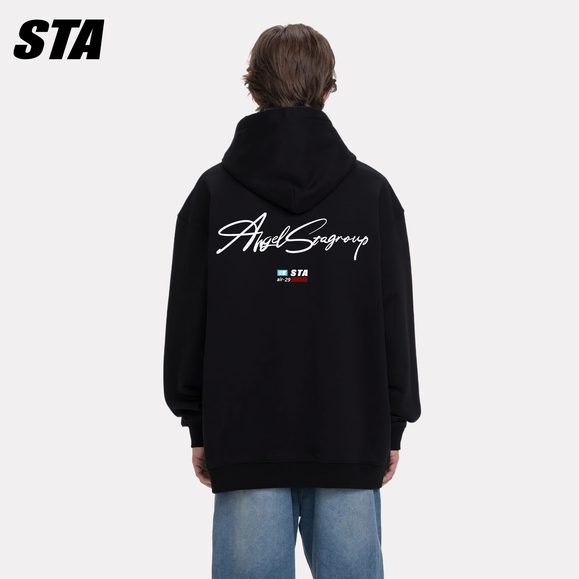 STA旗舰店美式花体字母连帽卫衣潮牌复古重磅纯棉情侣装宽松外套