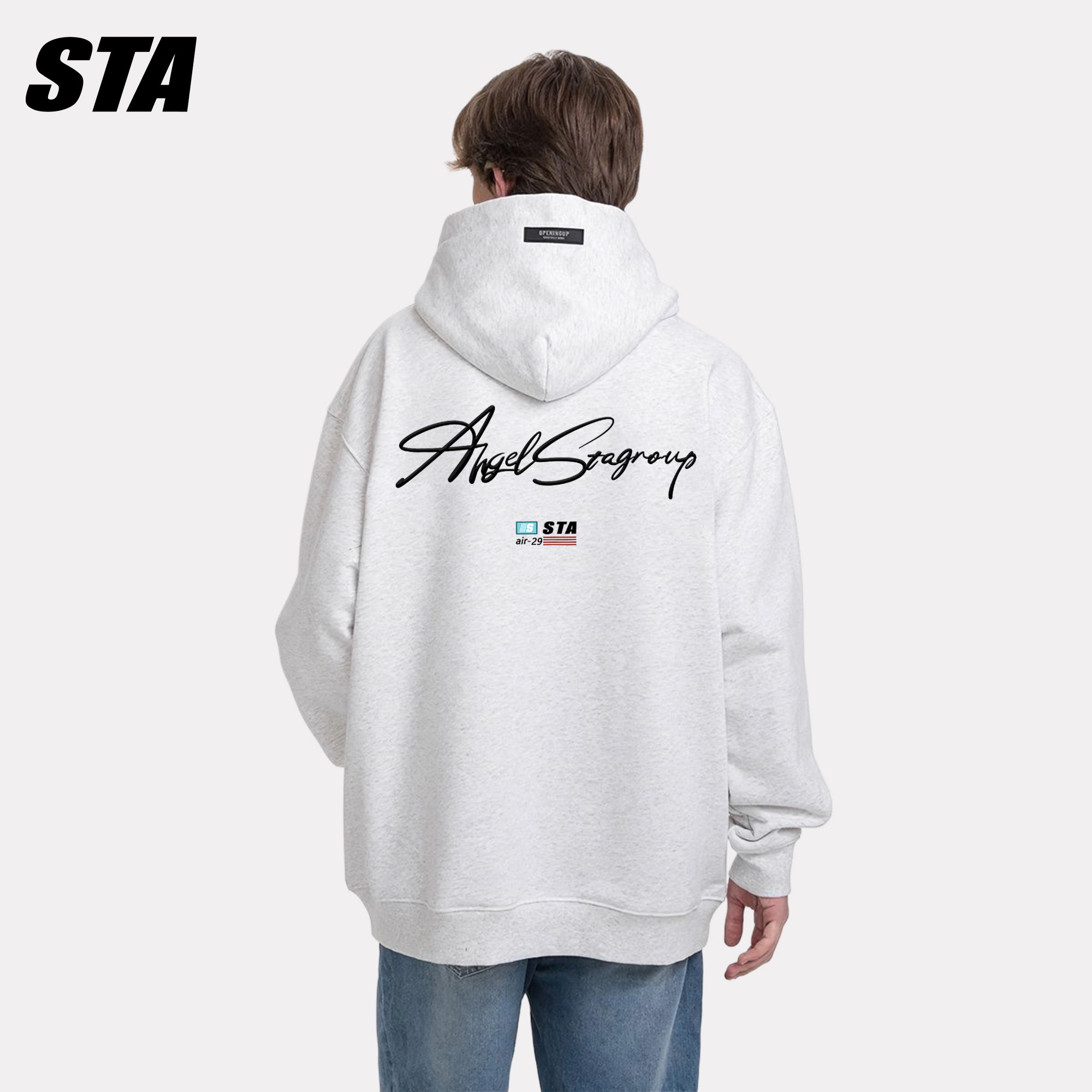 STA旗舰店基础小字母印花连帽卫衣男女美式潮牌重磅纯棉灰色外套