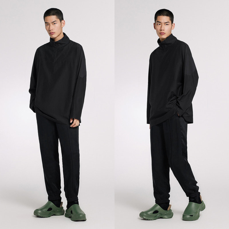 速写男装秋季新款休闲裤宽松九分运动束脚裤拼接设计个性黑色裤子