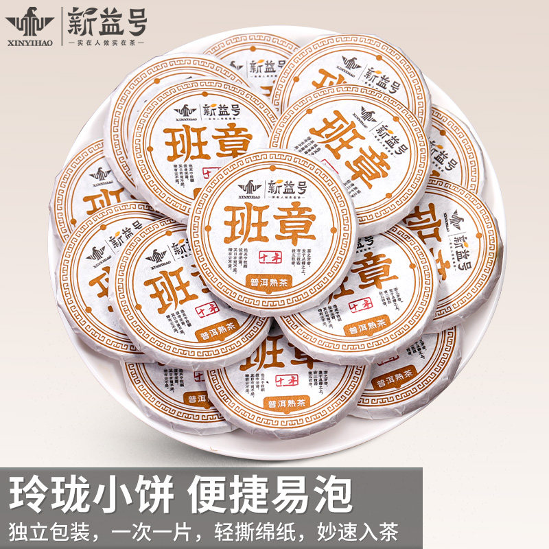 新益号十年以上老班章普洱茶熟茶叶云南古树小玉饼独立装口粮茶叶