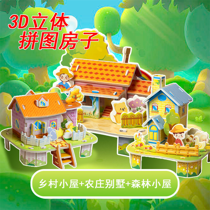 儿童3d立体拼图3到6岁上房子积木拼图女孩3diy手工小屋子益智玩具