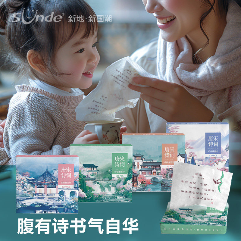 开学季唐诗宋词印花抽纸巾小包小学生餐巾纸国潮风面巾纸30抽母婴