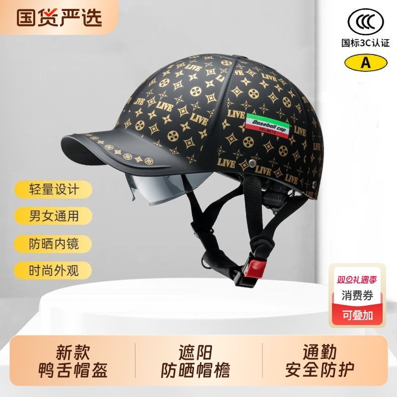 3C认证电动车头盔四季通用夏天防晒鸭舌棒球帽男女摩托半盔安全帽
