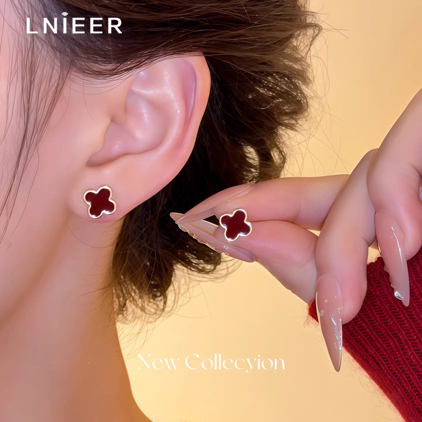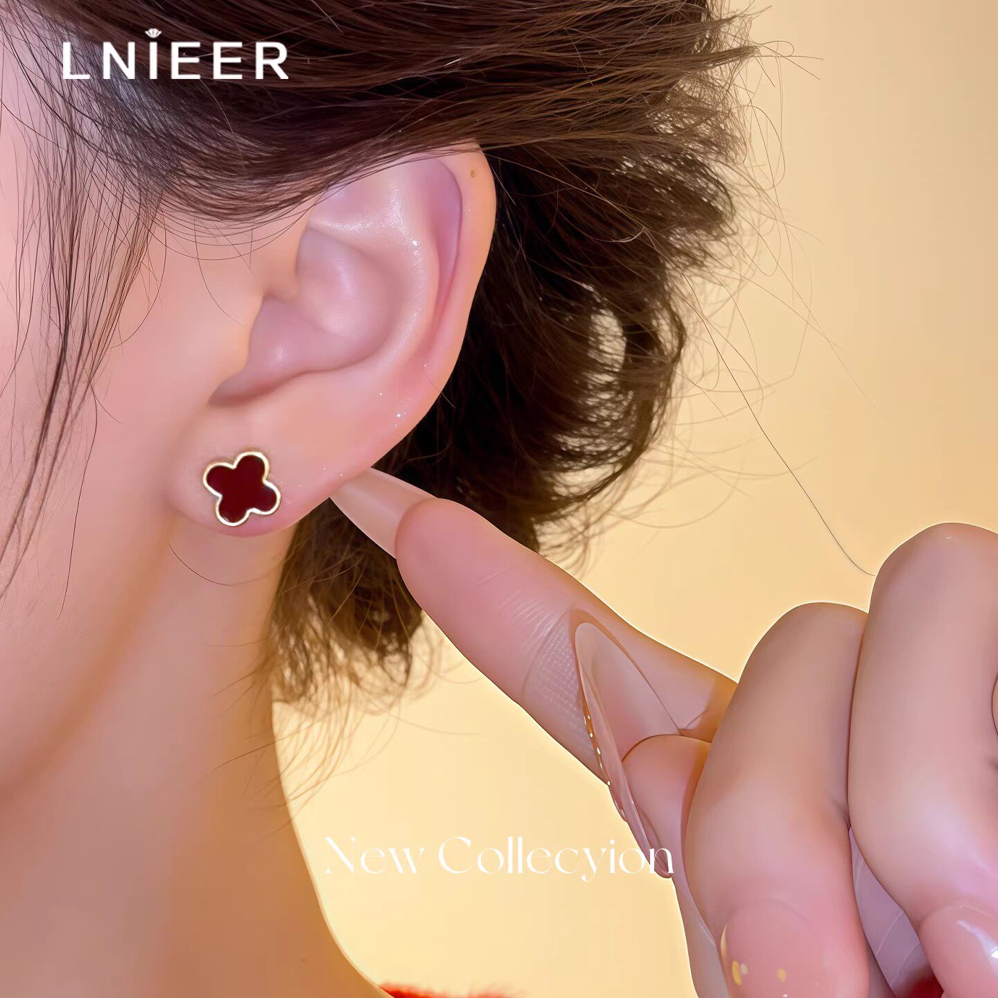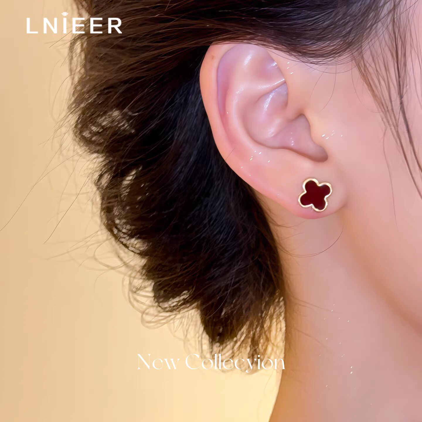 S925纯银针红色四叶草耳钉女轻奢本命年耳环2026新款爆款新年耳饰