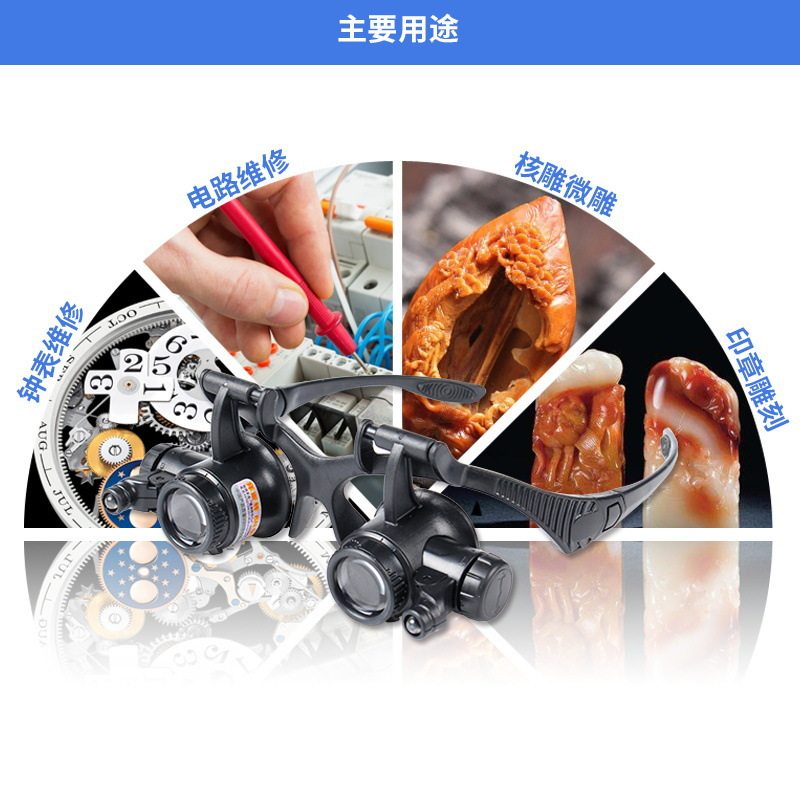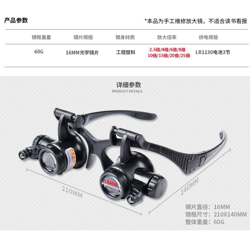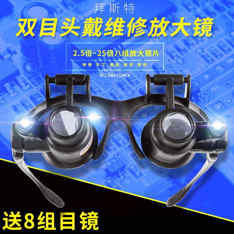 供应led放大镜批发 25倍头戴眼镜式维修放大镜8组目镜 9892G8KX