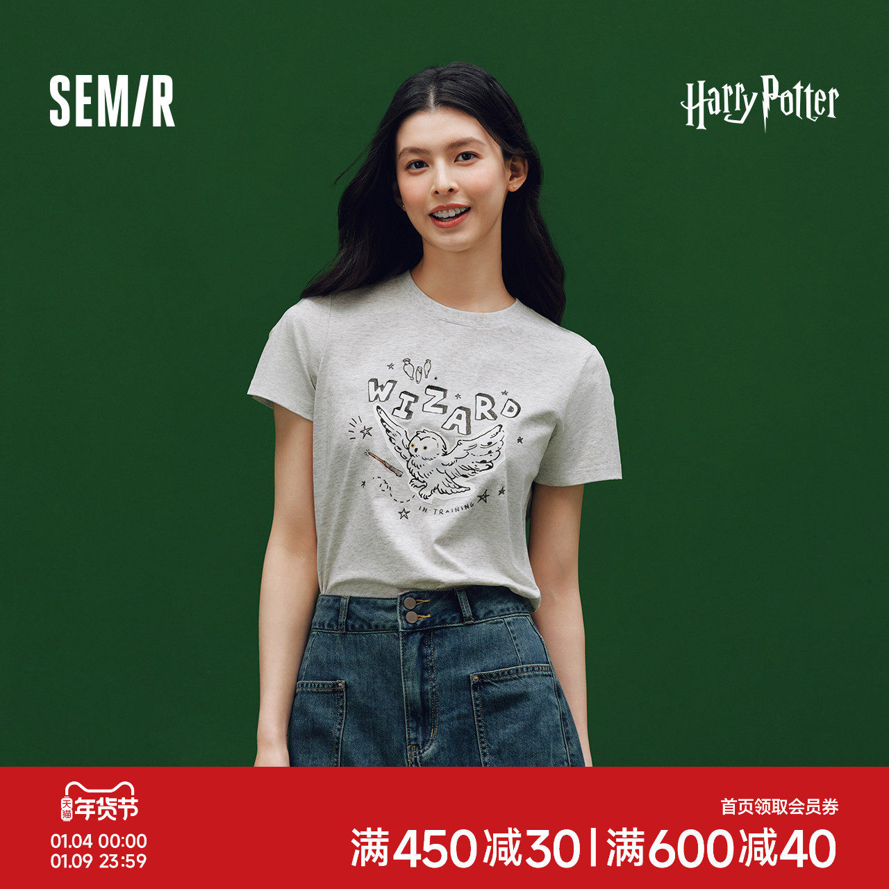 凉感T|森马哈利波特联名短袖T恤女抑菌2025新款吸湿速干正肩夏装