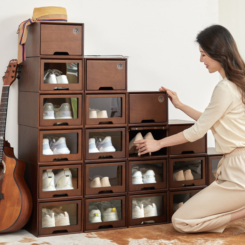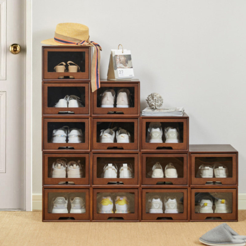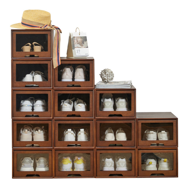 实木鞋盒收纳盒抽屉式高跟鞋aj球鞋大号免安装透明防潮亚克力鞋柜
