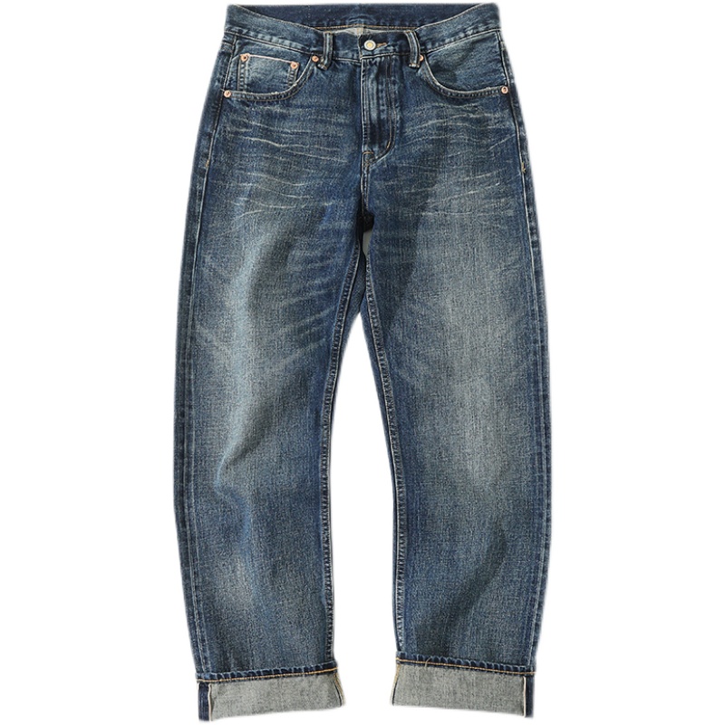 高端复古工艺水洗宽松直筒牛仔裤MBBCAR窄幅阿美咔叽赤耳丹宁长裤