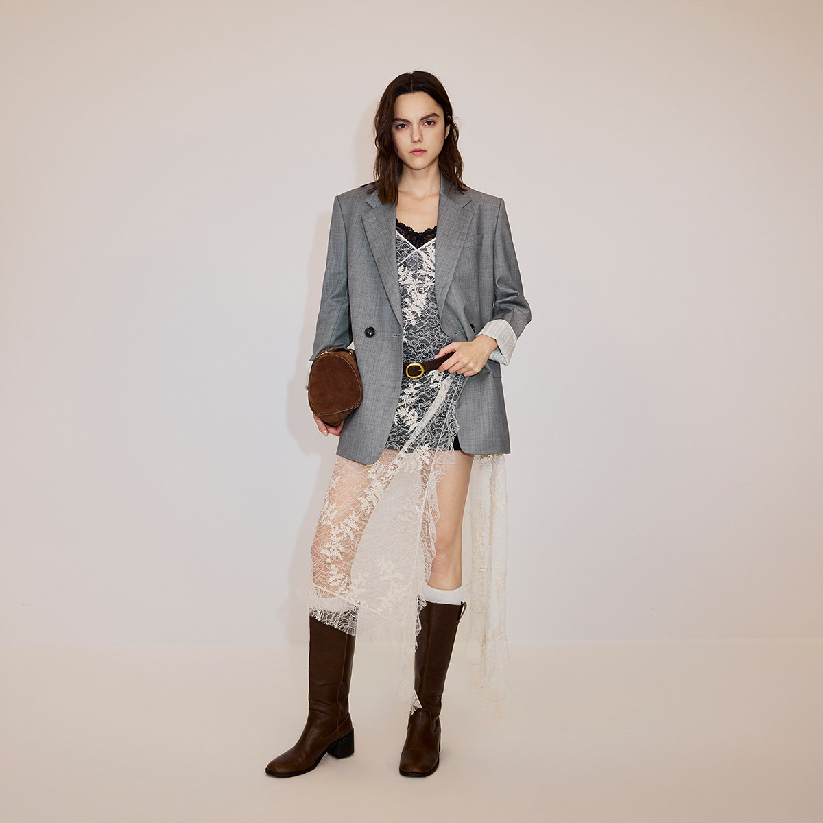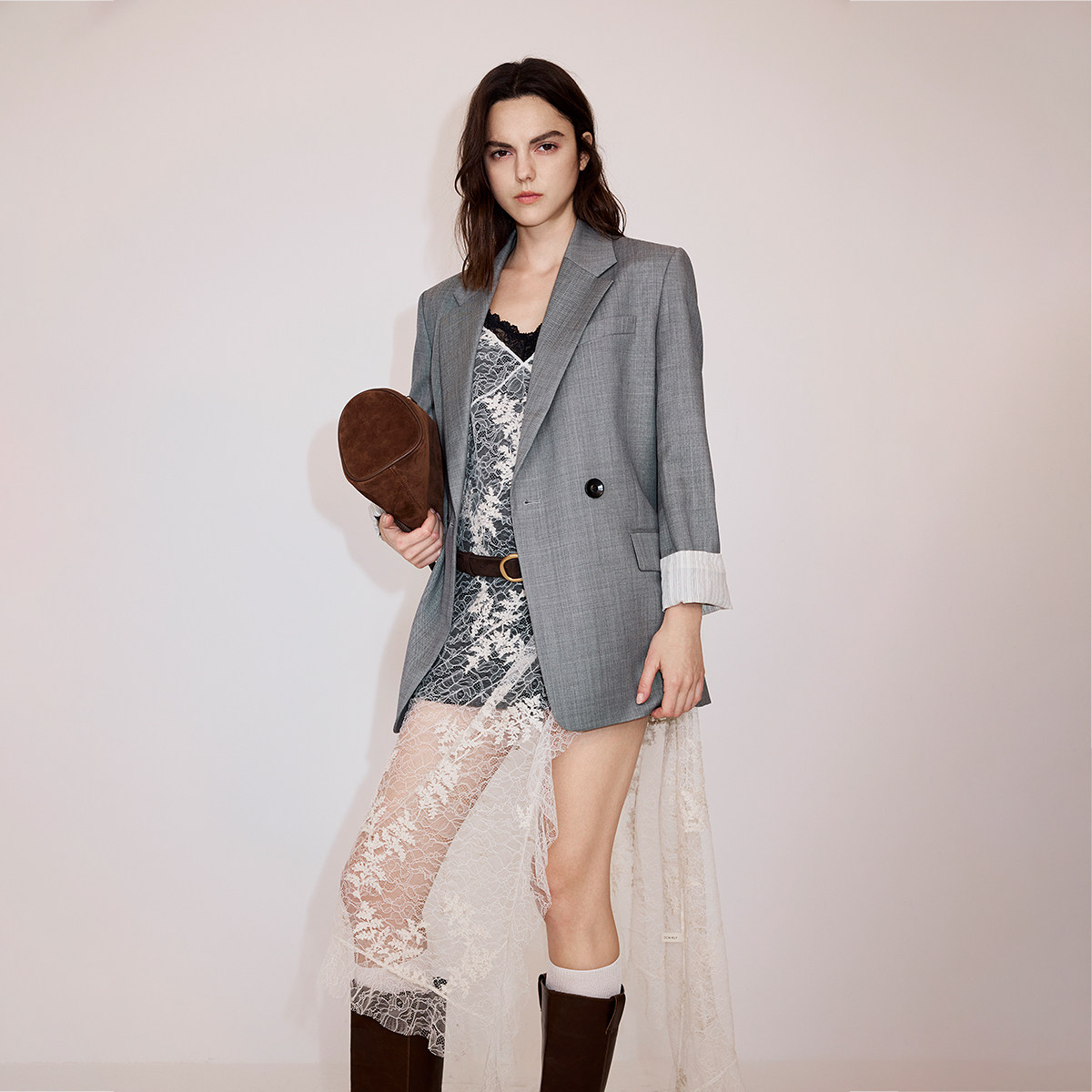 【新品】OCHIRLY欧时力 连衣裙2026春夏绣花蕾丝不对称吊带裙罩裙