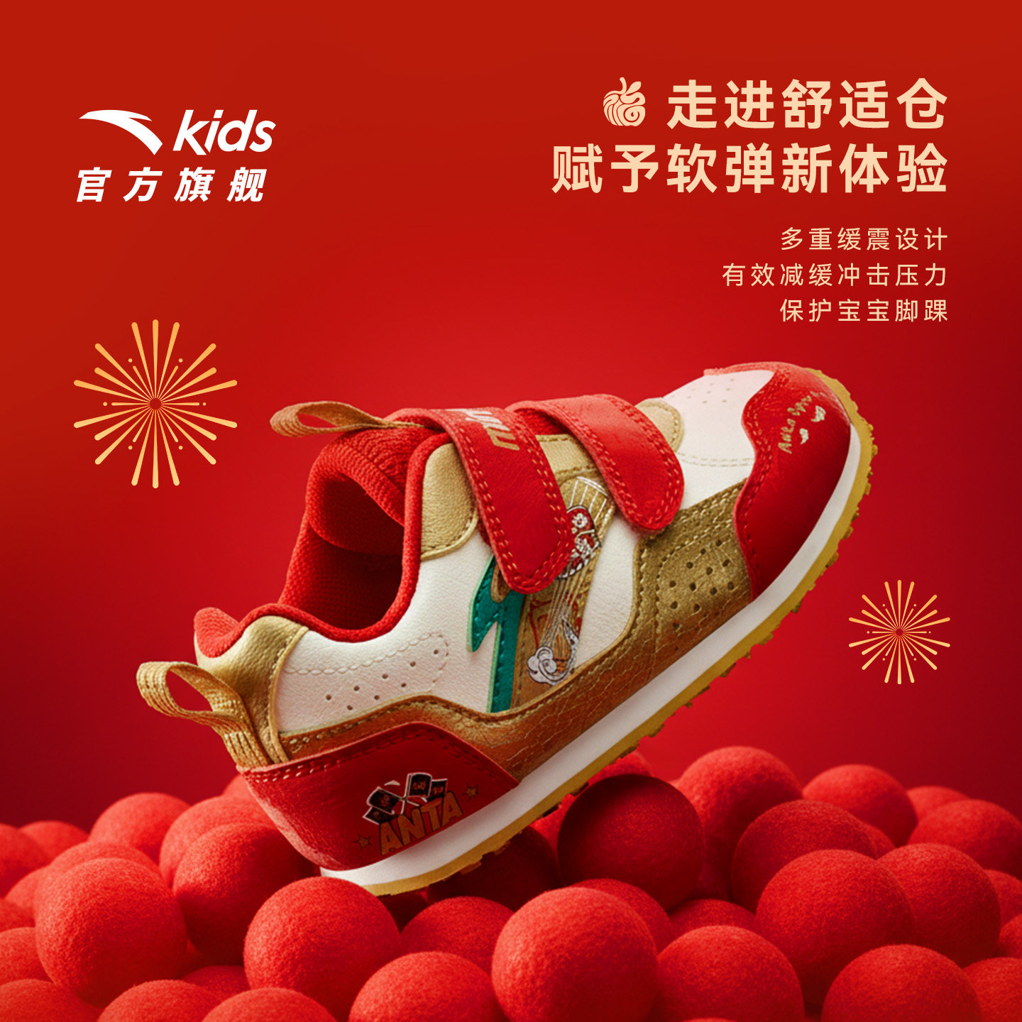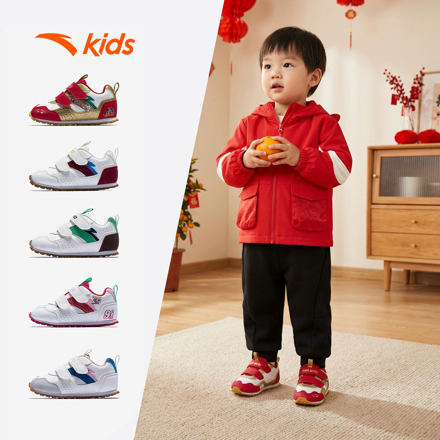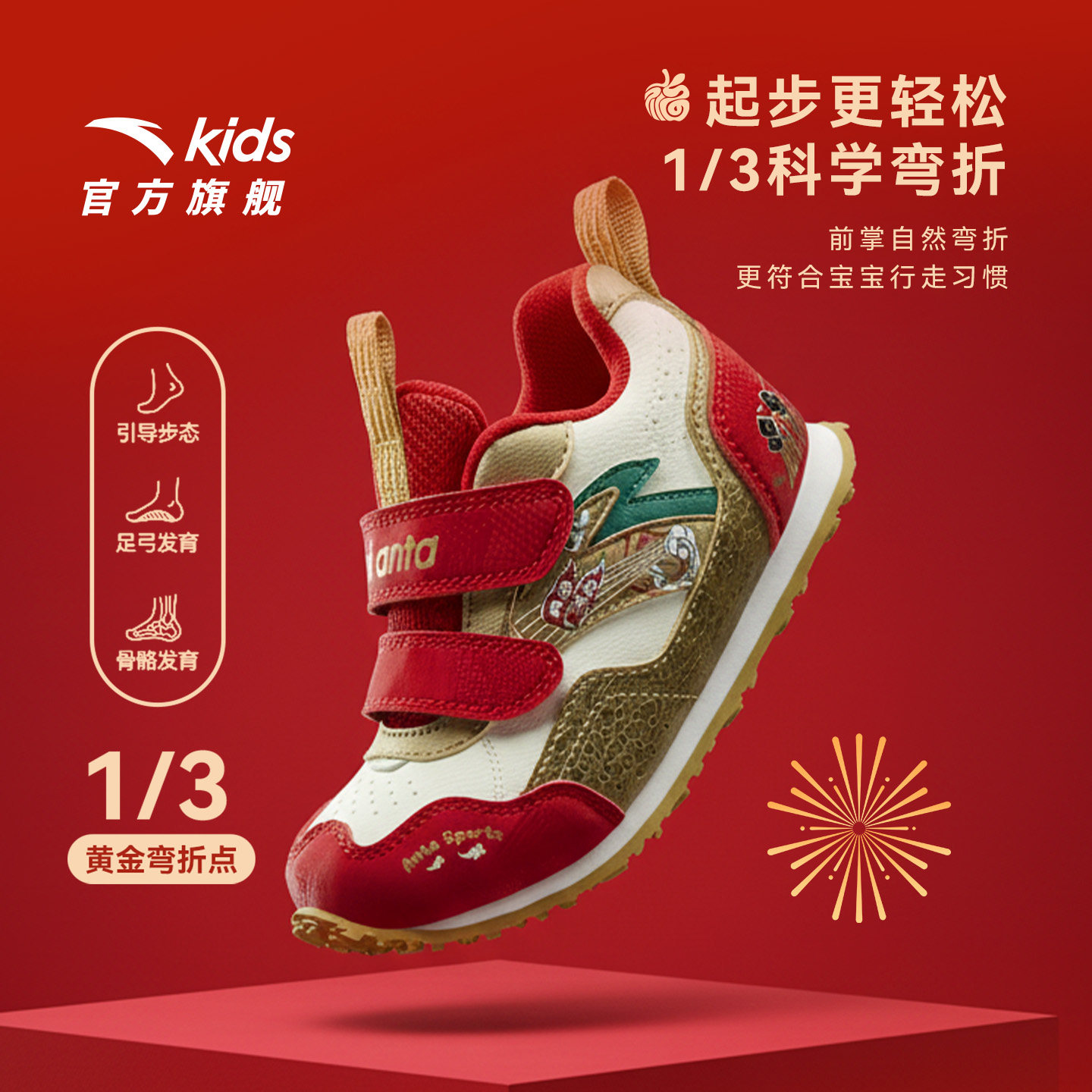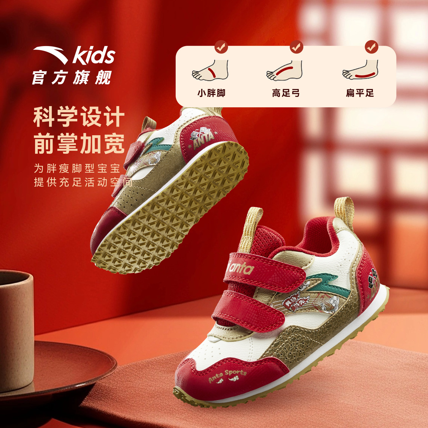 安踏学步鞋新年款红色童鞋婴幼儿鞋男女宝宝新款室内鞋儿童机能鞋