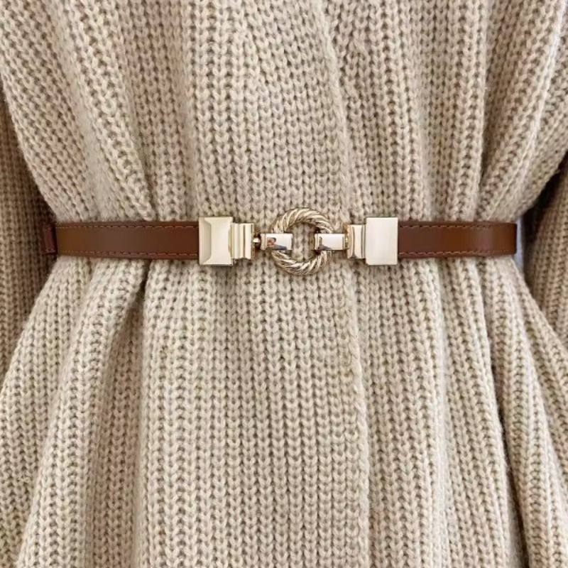 纯牛皮女士细腰带真皮金色扣头配裙子百搭连衣裙装饰收腰小皮带女