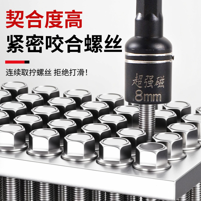 强磁套筒头内六角外自攻螺丝燕尾丝批头电动扳手电钻套头套装8mm