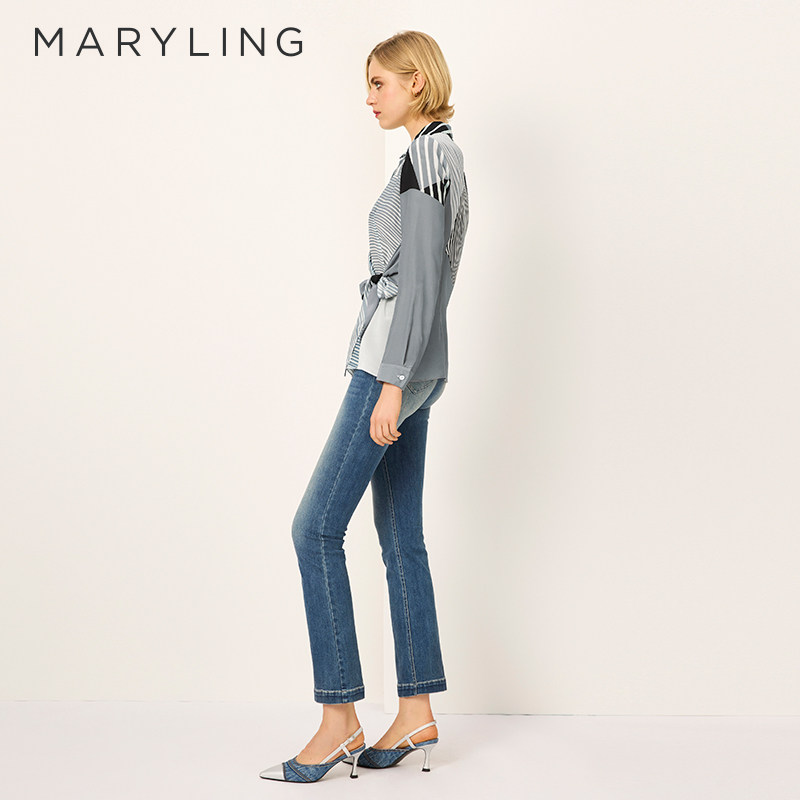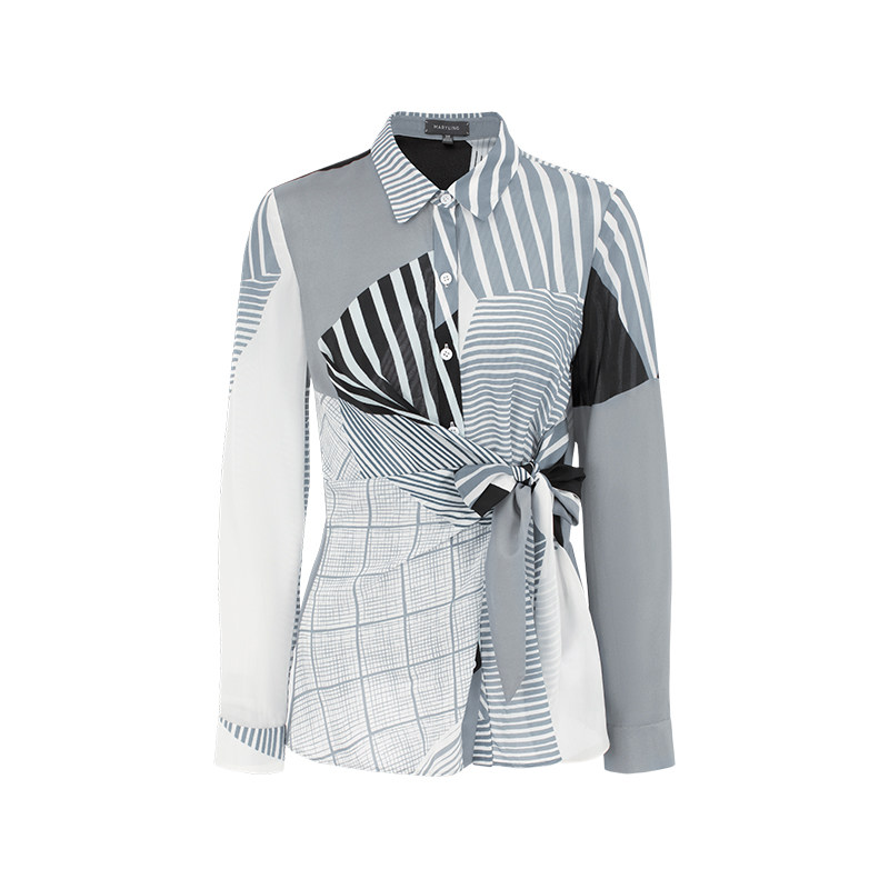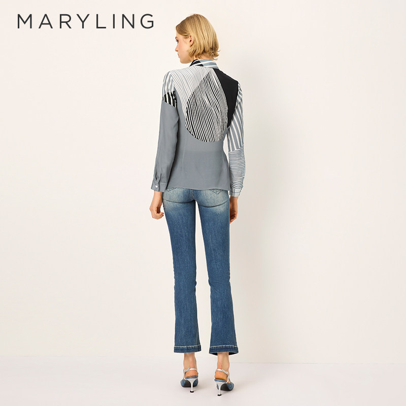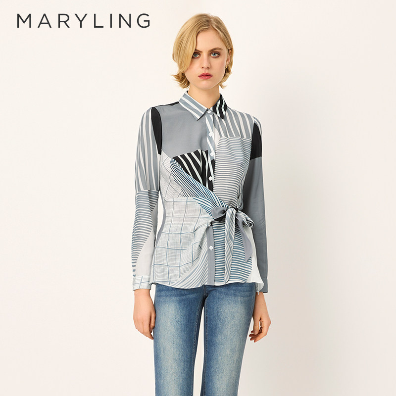 MARYLING玛俪琳2025夏黑白艺术画桑蚕丝薄款系带上衣A1FCW20390