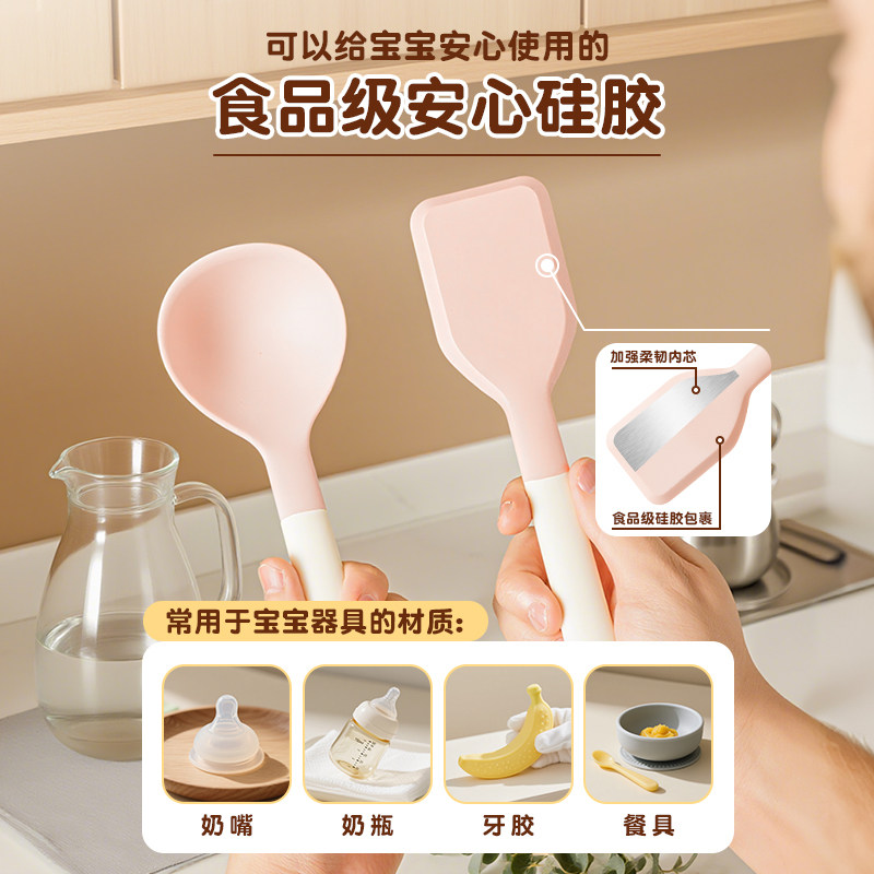 小号迷你硅胶锅铲汤勺子厨房婴儿宝宝专用辅食工具套装耐食品级