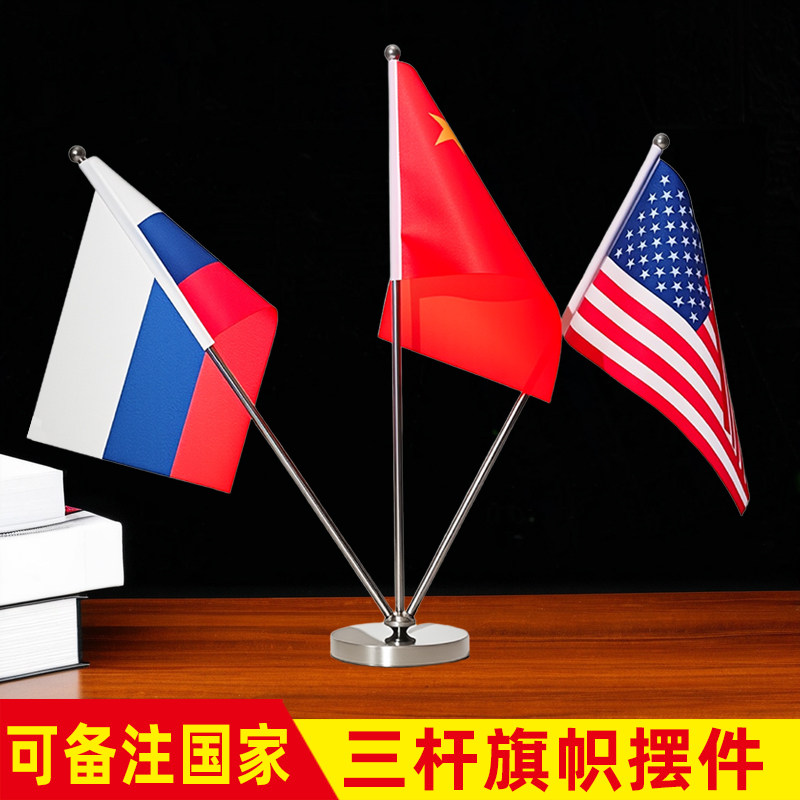 V型桌旗座不锈钢桌旗架座会议室桌上小国旗党旗小红旗桌旗双杆摆件中国美英法德商务洽谈装饰展示谈判三叉