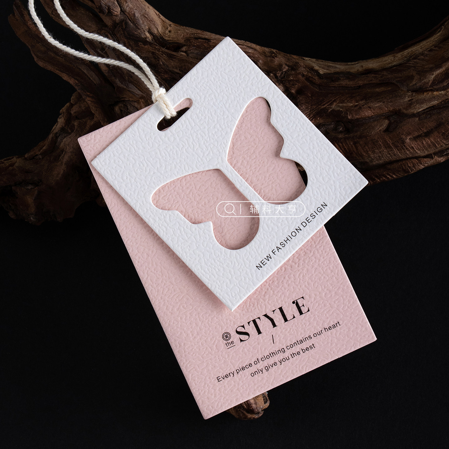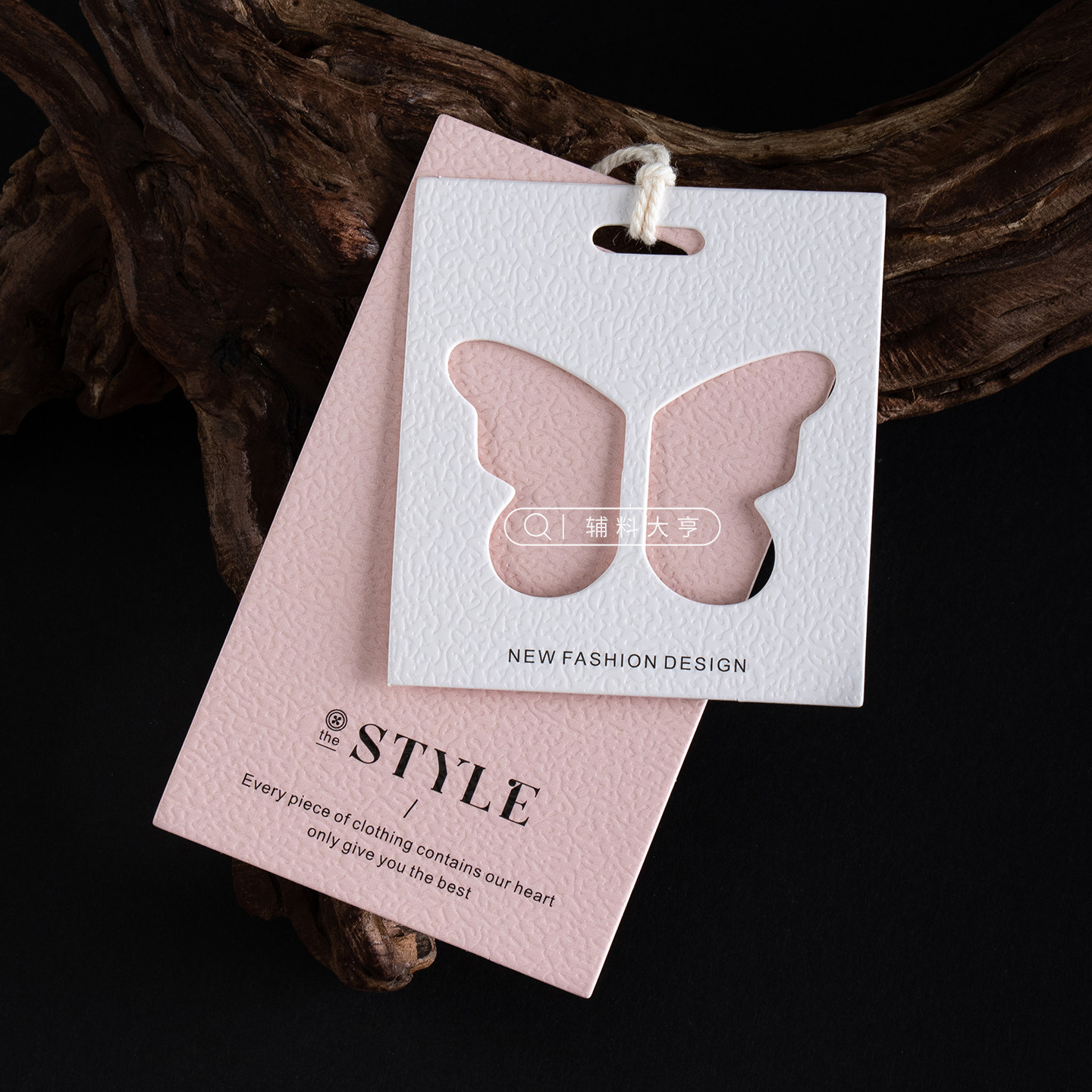 网红风蝴蝶服装吊牌定制LOGO商标挂卡订做粉色系标签通用卡片定做