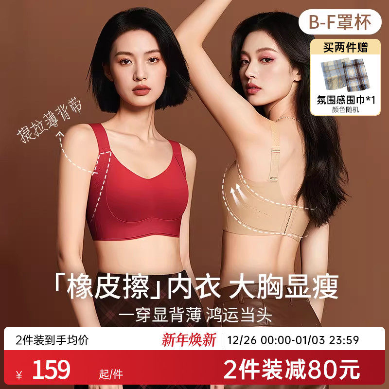 润微橡皮擦女士内衣大胸显小显瘦收副乳防下垂调整型上托大码文胸