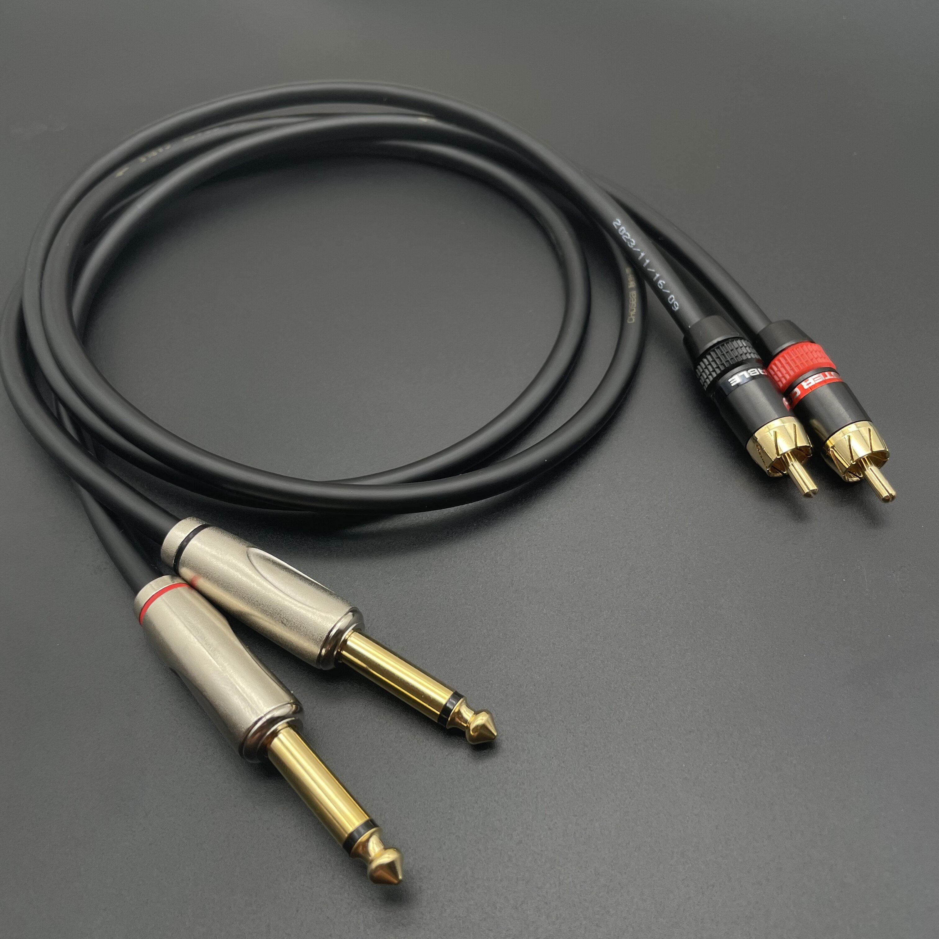 6.5转双莲花音频线大二芯转rca2对2AV转6.35调音台钢琴音箱连接线