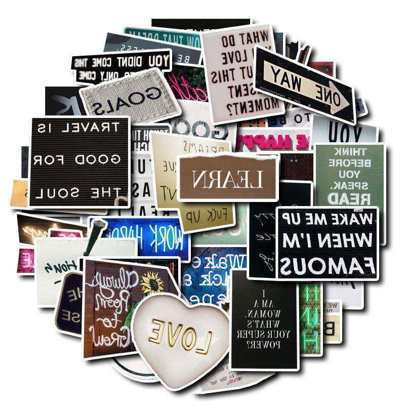 50张复古英文文字标识iPad手机保护壳电脑高颜值装饰diy防水手账