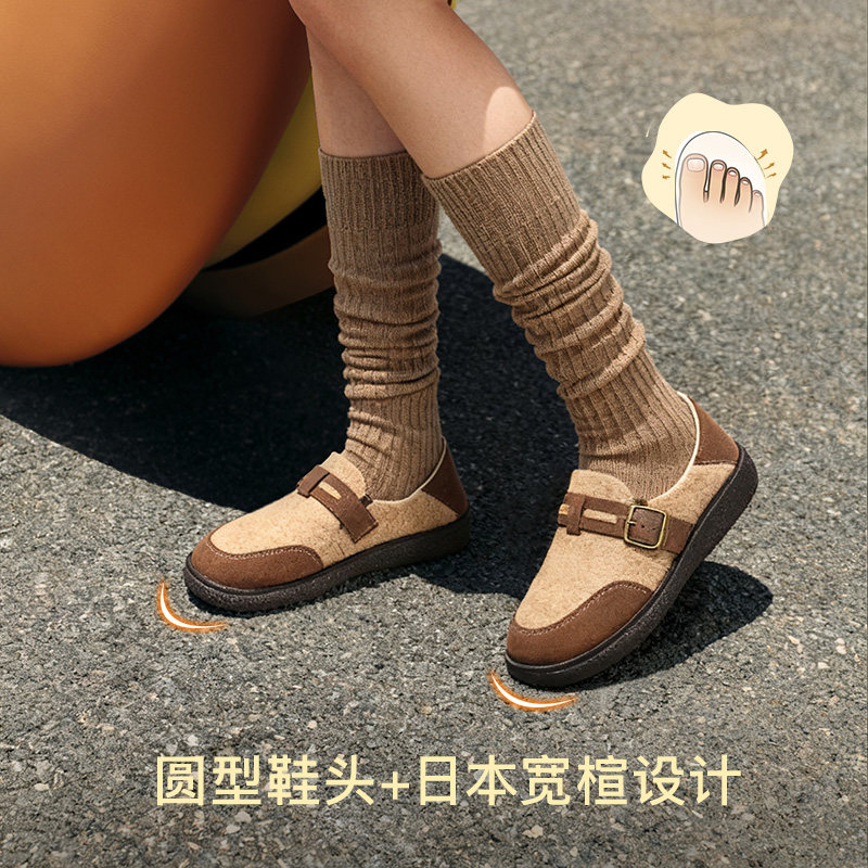 星期六真皮加绒保暖勃肯棉鞋女鞋2025冬季新款厚底豆豆鞋毛毛鞋子