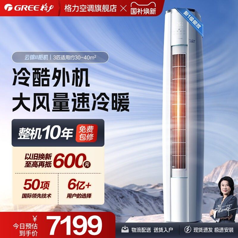 【Gree/格力官方】新一级能效变频冷暖3匹客厅立式空调柜机云锦II