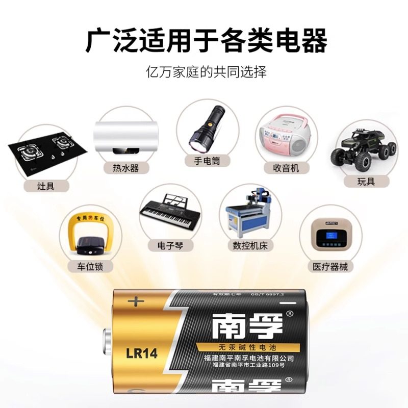 南孚电池2号碱性lr14中号C型手电筒1.5v玩具钢琴收音机二号非充电