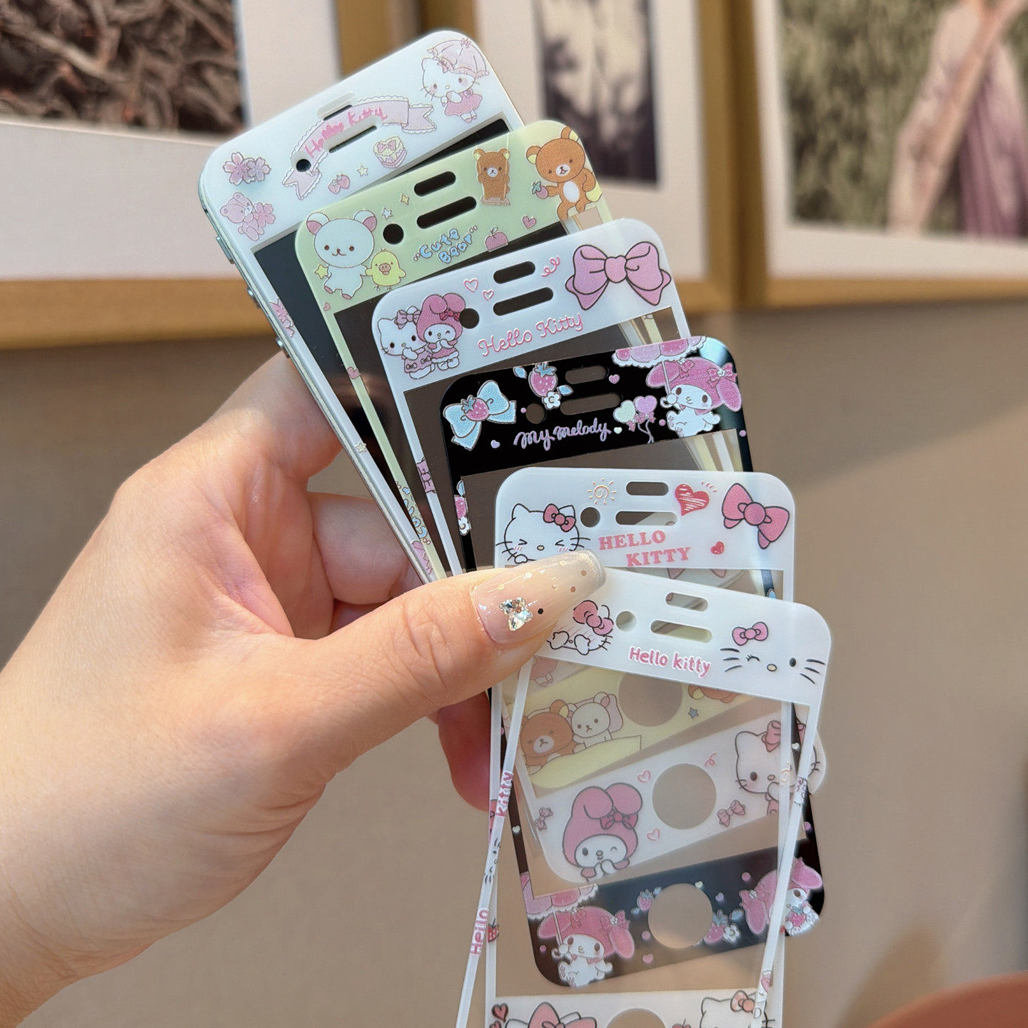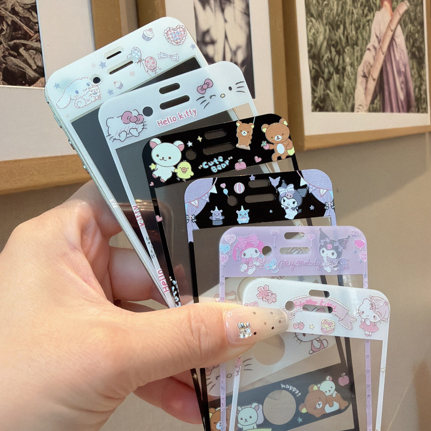 可爱kt猫苹果4s钢化膜适用iPhone5s防尘6P卡通7透明8plus手机膜SE