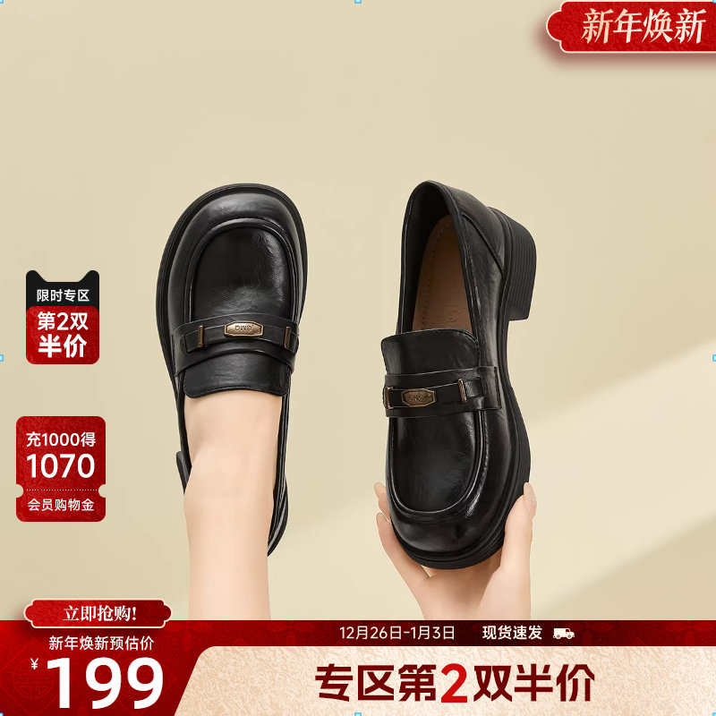 达芙妮时尚单鞋女新款春秋百搭休闲鞋气质乐福单鞋玛丽珍鞋工作鞋