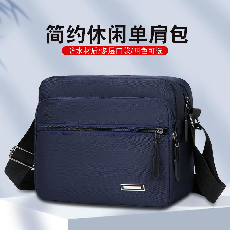 新款男式挎包休闲包牛津布包单肩包商务黑色背包男包防水斜挎多层
