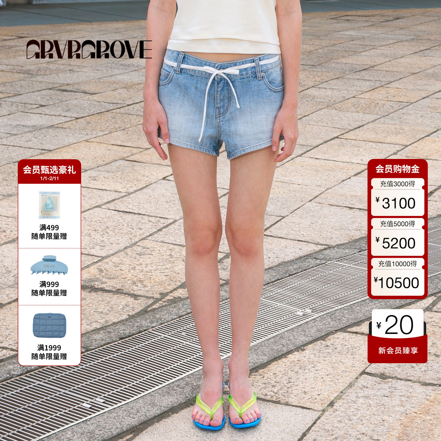 GROVE官方旗舰店2025夏新款浅牛仔短裤女下装休闲 GM5DB01J