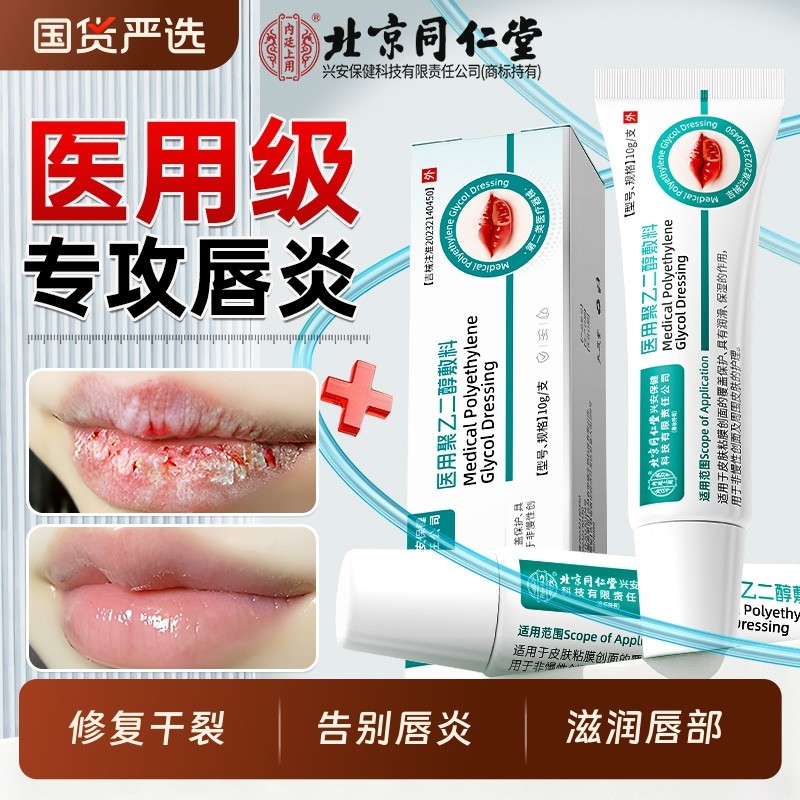 同仁堂聚乙二醇敷料唇炎专用唇膏嘴唇干裂脱皮医用型口角炎修复膏
