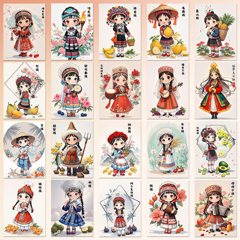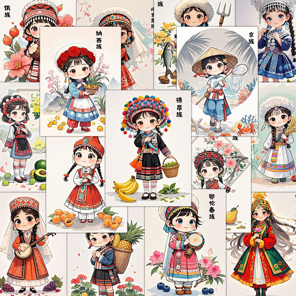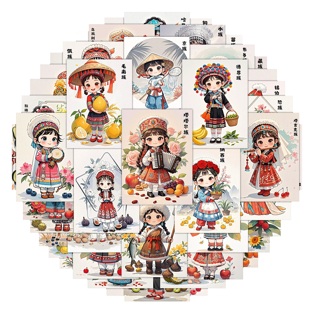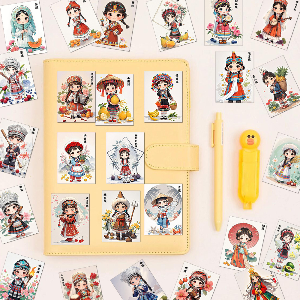 160张56个少数民族中华传统文化特色民族服饰图鉴学习平板贴纸diy