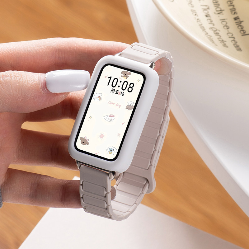 适用华为手环10/8/9表带新款男女智能运动硅胶磁吸腕带10nfc版夏天替换手表带创意高级感ins风硅胶保护壳套装