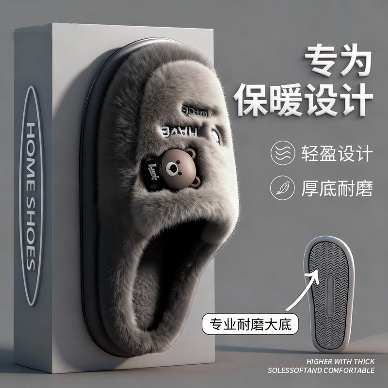 棉拖鞋男款秋冬季2025新款室内家居防滑厚底毛毛绒保暖男士拖鞋女
