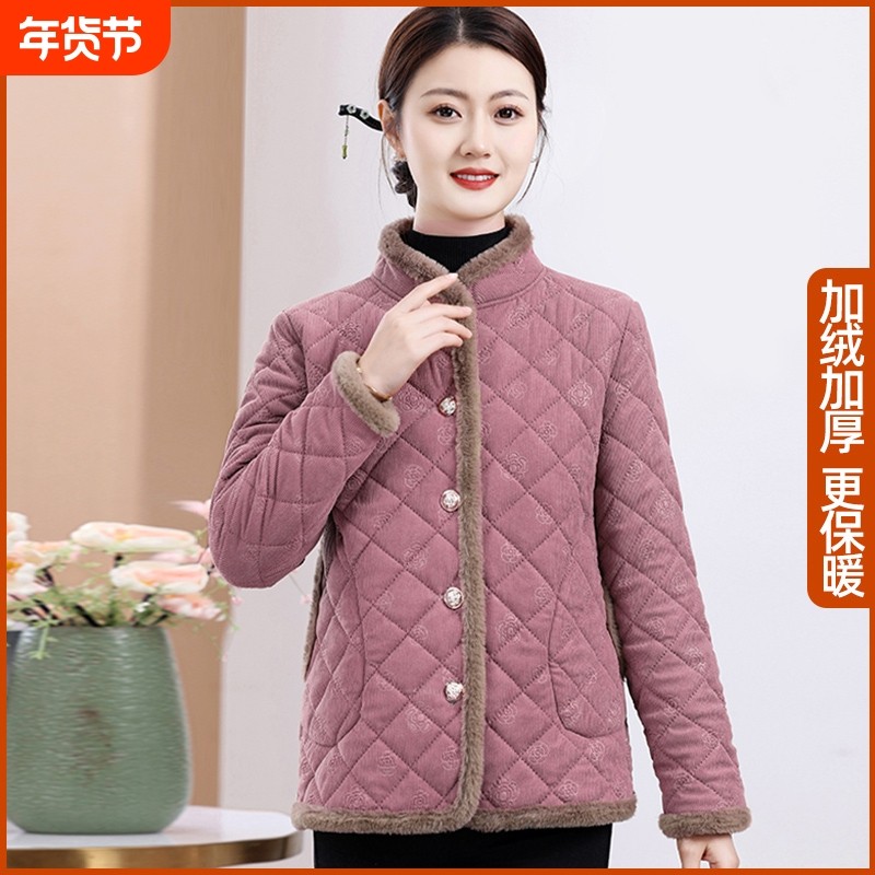 中老年妈妈小棉袄女装加绒加厚棉衣外套新款洋气秋冬保暖棉服薄款