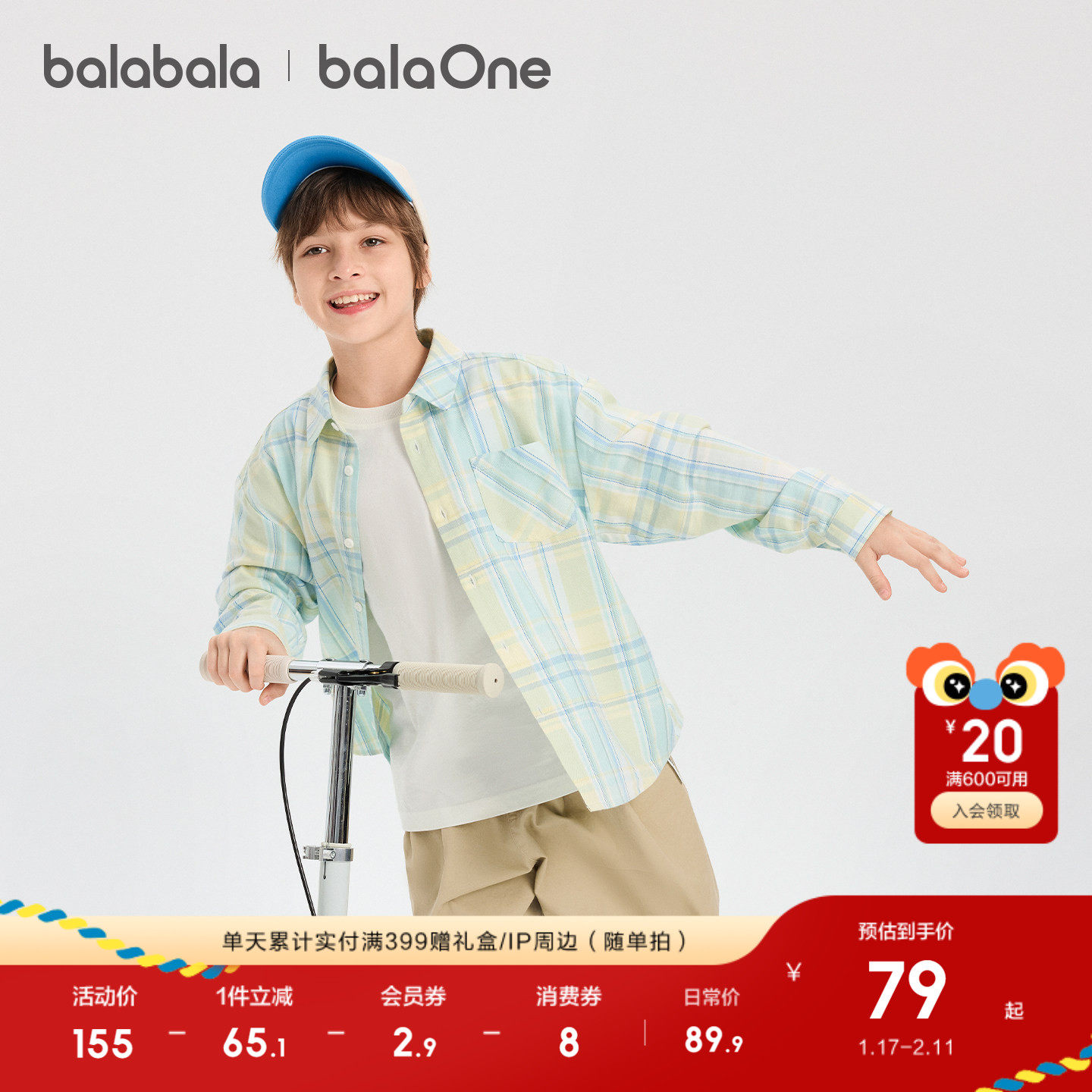 巴拉巴拉童装儿童长袖衬衫宝宝女童男童2026新款春装宽松格纹百搭