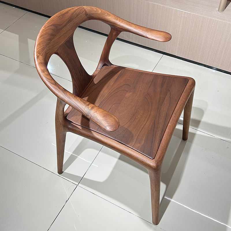 太师椅靠背椅子家用餐椅现代简约餐桌凳子牛角椅铁艺仿实木茶桌椅